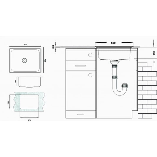 Кухненска мивка алпака 800x500х170 мм с ляв плот