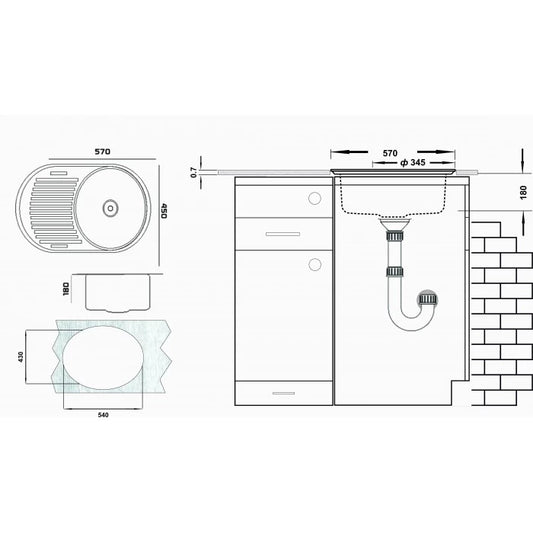 -9% ОтстъпкаКухненска мивка алпака 510/180 - кръгла за вграждане
