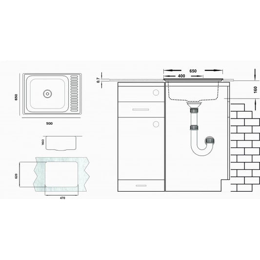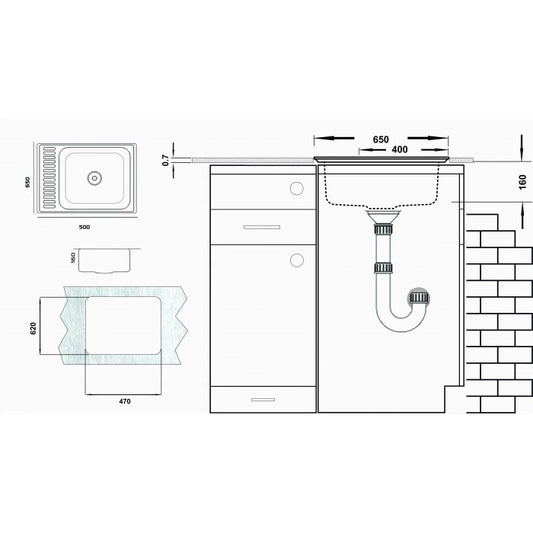 -30% ОтстъпкаКухненска мивка алпака 650x500 мм с ляв плот