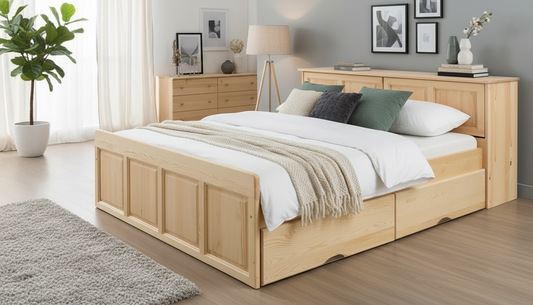 Дървено легло ТИТАН с права ракла + гръб + чекмеджета