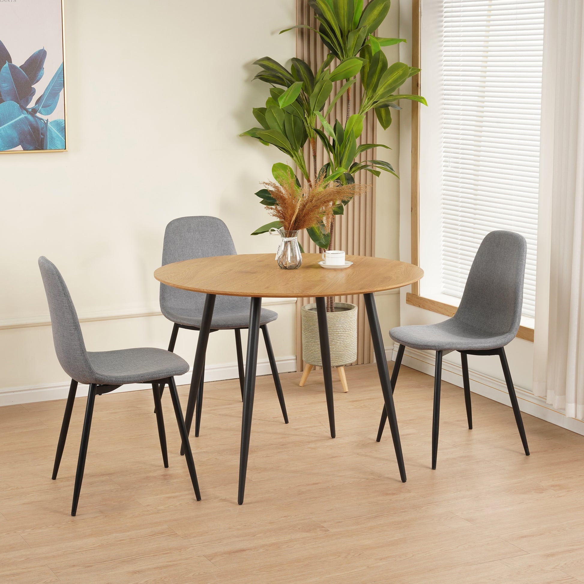 Комплектът е супер изгоден за цената. Масата е стабилна, а столовете са удобни. Перфектно за малката ни трапезария.