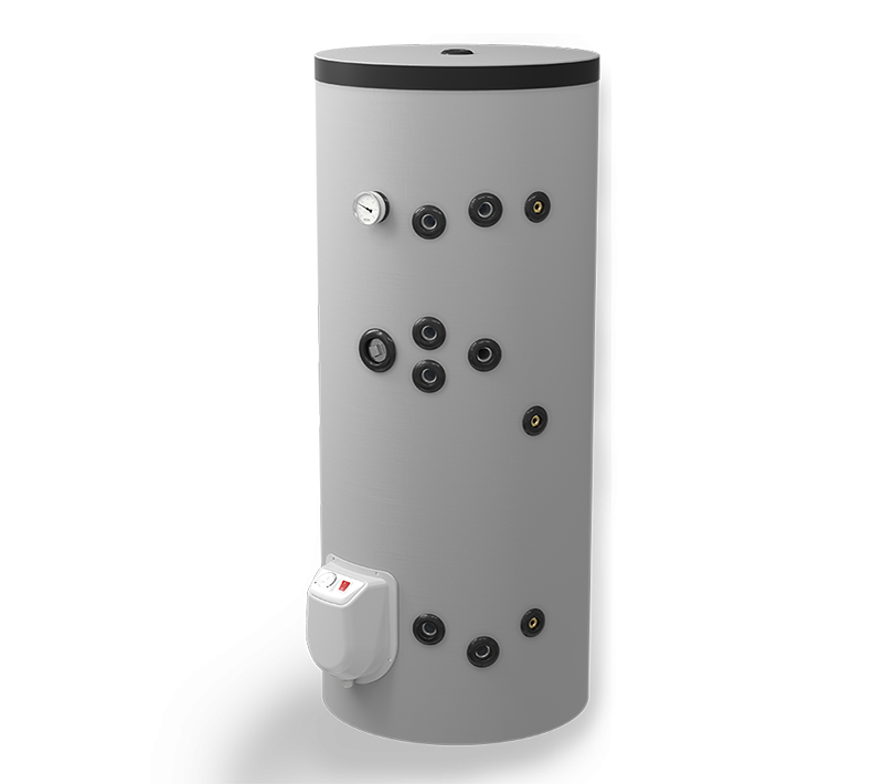 - Оснащен с две серпентини, предназначени за съвместна работа с два източника на топлина. Моделът осигурява значителни икономии на енергия чрез гъвкаво управление на отоплението през различни сезони. Горната серпентина е за свързване към котел или камина с водна риза, докато долната е идеална за свързване със слънчеви колектори или термопомпи.