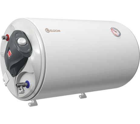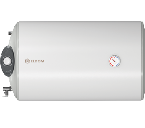 Бойлер ЕЛДОМ 80, 3 kW, хоризонтален, емайлиран, голям диаметър, ел. част и тръби вляво