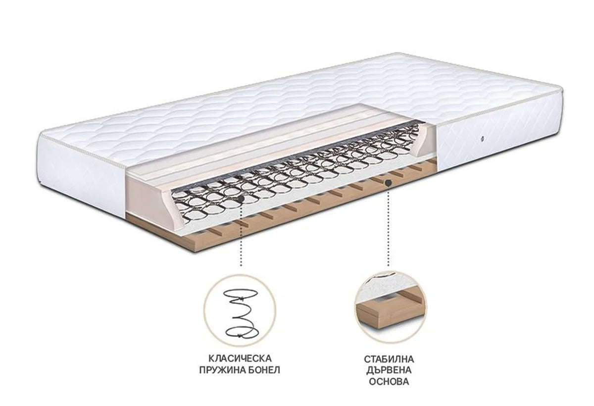 Класическият модел Awa разполага с вградена дървена рамка, предоставяйки отлично съчетание на удобство и добра опора. Матракът е оборудван със стабилна основа от висококачествен иглолистен материал, което позволява използването му без необходимост от допълнителна подматрачна рамка. Практично и стилно решение за обновяване на вашия спален комфорт.