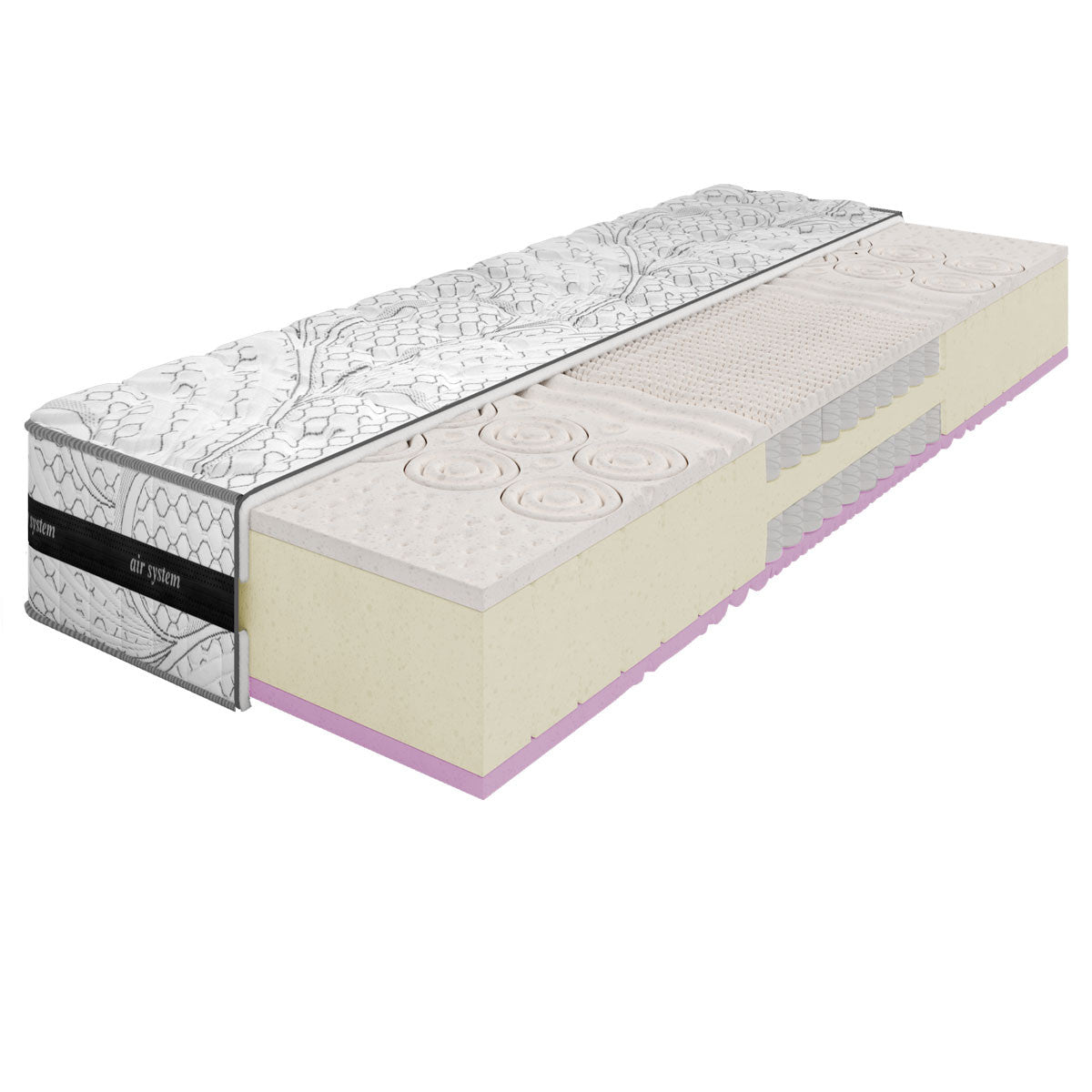 Матракът разполага с хибридна структура, комбинираща предимствата на технологията с джобни пружини и комфорта на висок клас полиуретанови пени. Допълнителният слой от латекс от едната страна предоставя допълнителен комфорт, като премахва нездравословните точки на напрежение. Латексът е антибактериален и хипоалергичен, създавайки здравословна среда за сън, където акарите и мухълът не могат да се развиват.