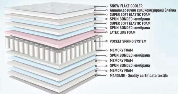 От едната страна, матракът е облицован с латексов подобен слой за изключителна издръжливост и комфорт. От другата страна, изпитайте уюта на мемори пяна, която се адаптира към извивките на вашето тяло и поддържа топлината по-добре през по-студените дни.