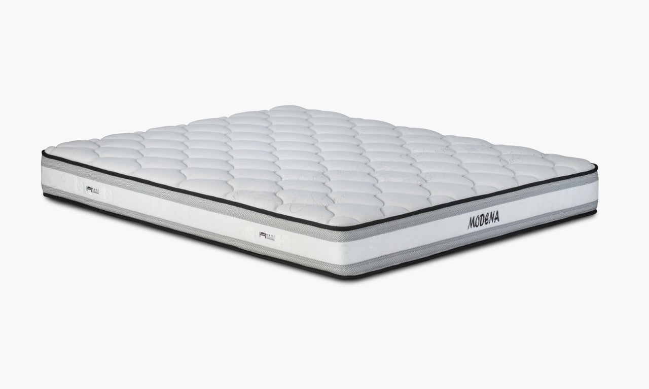 След последната актуализация от НАНИ, МОДЕНА придоби съвременна визия, съчетана с високо качество. Цветовата комбинация в бяло, сиво и черно придава на матрака модерен и удобен вид през целия период на ползване. Слоевете от SUPER SOFT ELASTIC FOAM допълват ергономичността на PENO ELASTIC FOAM сърцевината.