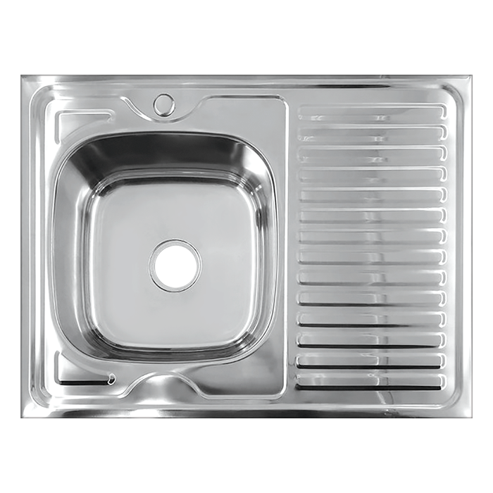 Този модел от алпака (инокс) се отличава с **големи размери 800x600 мм**, което осигурява обширно работно пространство. Десният борд (отцедник) предоставя идеална зона за сушене на съдове или за подготовка на хранителни продукти, оптимизирайки работния поток във вашата кухня.