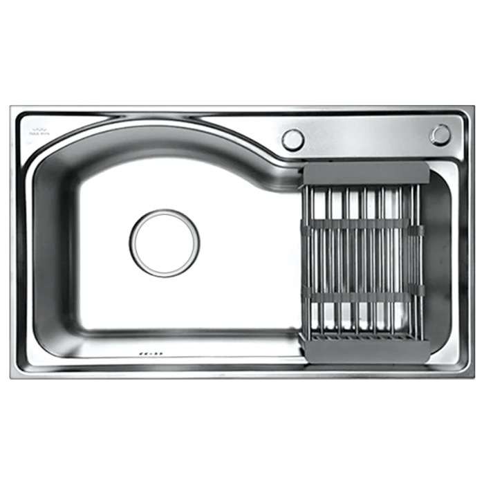 Този пълен комплект мивка от алпака (инокс) с размери 780x470 мм е проектиран за максимално удобство. Разполагате с голямо основно корито и практична допълнителна ваничка, идеална за изплакване на прибори или размразяване на храни.