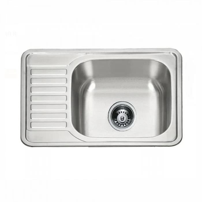Тази просторна кухненска мивка от алпака (неръждаема стомана) с размери 650x500 мм е проектирана за лесна работа с големи съдове. Наличието на ляв отцедник осигурява удобно пространство за сушене на чинии или за подготовка на хранителни продукти.