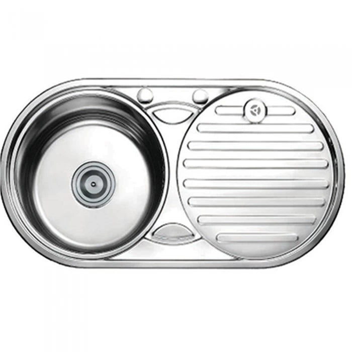 Тази мивка от алпака (инокс) съчетава **модерен дизайн с овално/обло корито** и изключителна функционалност. С обща дължина 830 мм, тя разполага с практичен плот (отцедник) и е с впечатляваща **дълбочина 230 мм**, осигуряваща максимален обем за миене на големи съдове.