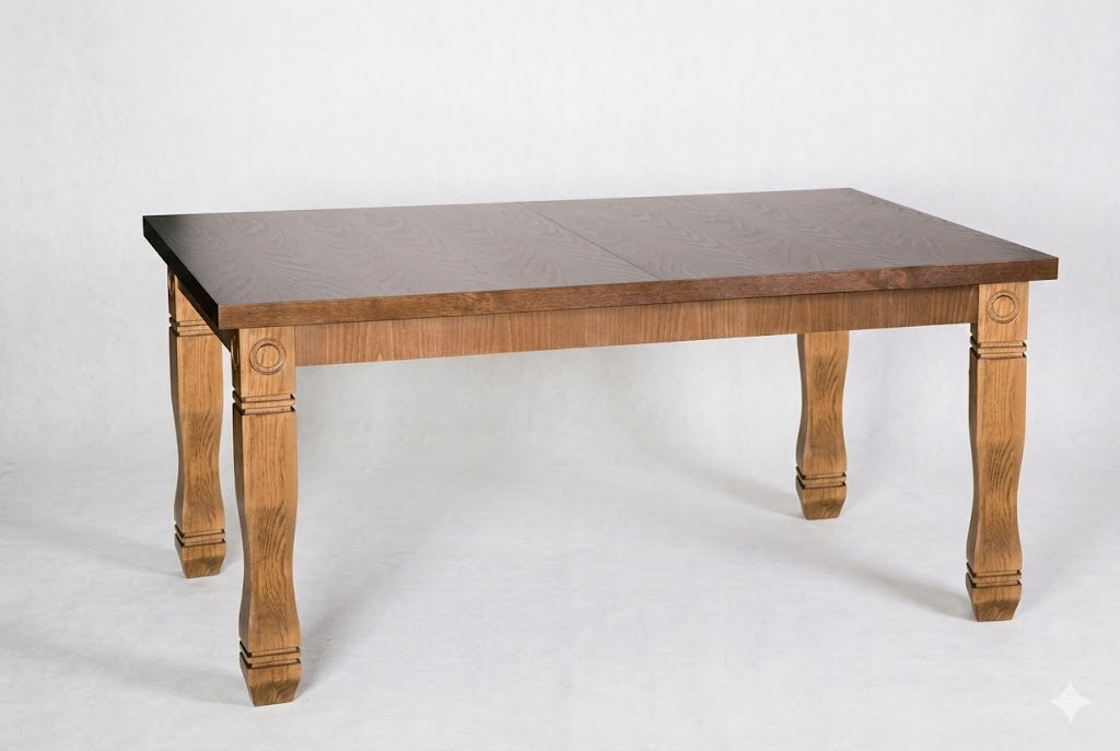 Благодарение на съвременните разтегателни механизми и висококачествения обков, масата лесно се трансформира, за да посрещне семейство и гости. Дебелите масивни крака гарантират изключителна стабилност и устойчивост.